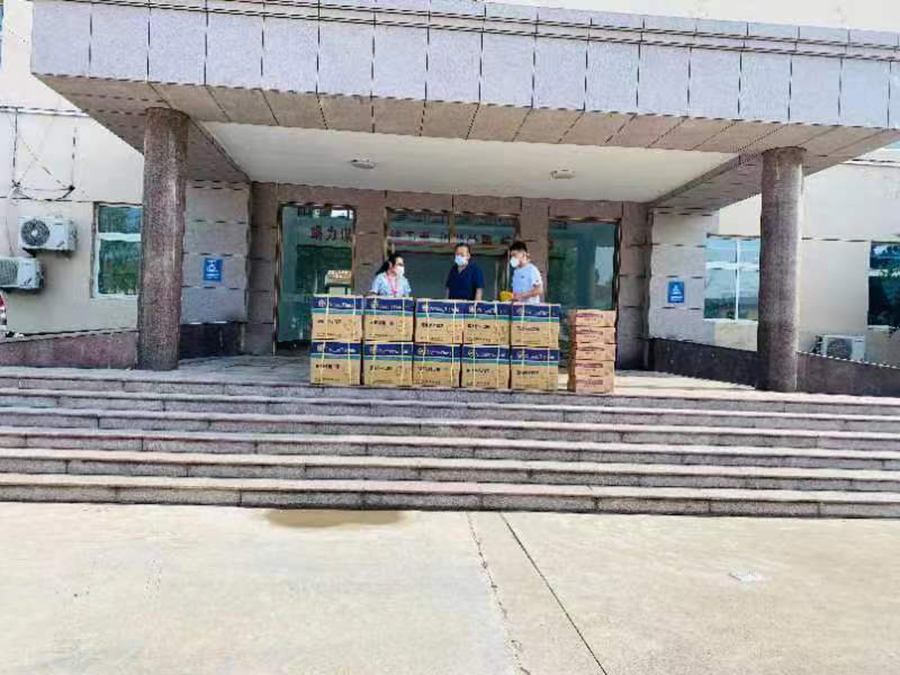 牡丹區(qū)人大代表,菏澤三木衛(wèi)生材料有限公司董事長(zhǎng)王總代表公司向馬嶺崗鎮(zhèn)捐贈(zèng)醫(yī)用外科口罩20000片,檢查手套25000只,并與胡鎮(zhèn)長(zhǎng)了解當(dāng)前防控情況。