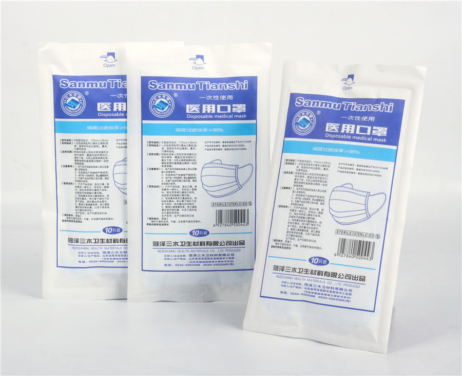 2、檢查產(chǎn)品包裝是否完好,打開包裝后,從滅菌包內(nèi)取出口罩。