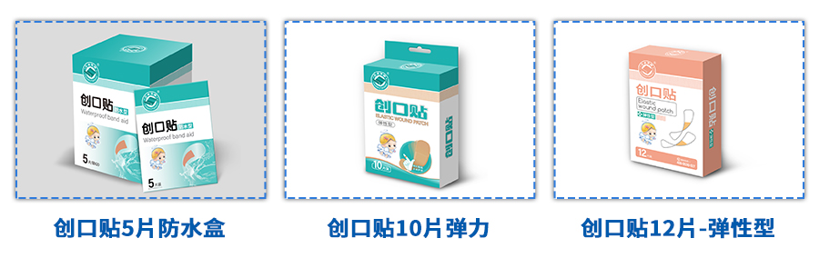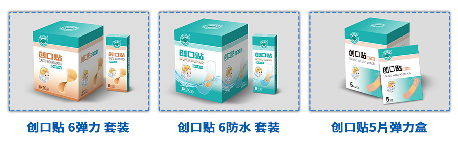 【型號】A型:常規(guī)創(chuàng)口貼(平布、無紡布)、B型:彈性創(chuàng)可貼、C型:防水創(chuàng)可貼、D型:棉布創(chuàng)可貼、E型:透氣創(chuàng)可貼、F型:透明創(chuàng)口貼;1片/包、4片/包、5片/包、6片/包 8片/包、10片/包、12片/包、20片/包、50片/包、100片/包。